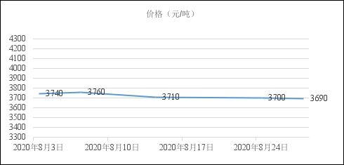 2020年8月份國(guó)內(nèi)建筑鋼價(jià)以震蕩為主,下圖為西安地區(qū)螺紋鋼HRB400EФ20mm價(jià)格走勢(shì)。
