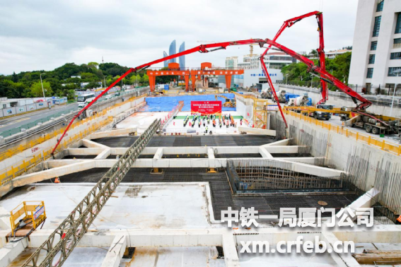 廈大白城站主體結(jié)構(gòu)封頂澆筑現(xiàn)場