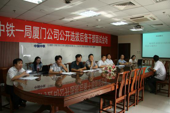 此次公開選拔從公司各部門、各項(xiàng)目領(lǐng)導(dǎo)干部構(gòu)成和崗位配置的實(shí)際情況出發(fā),設(shè)置了工程技術(shù)、安全質(zhì)量、項(xiàng)目管理、經(jīng)營(yíng)開發(fā)等公司機(jī)關(guān)及項(xiàng)目10個(gè)競(jìng)聘崗位,通過(guò)個(gè)人申請(qǐng)、項(xiàng)目考核推薦、資格審查、筆試、面試五個(gè)環(huán)節(jié),層層選拔,環(huán)環(huán)相扣、逐次篩選。筆試題從集團(tuán)公司及公司企業(yè)文化、各項(xiàng)規(guī)章制度、發(fā)展戰(zhàn)略、經(jīng)營(yíng)管理方針、黨建工作與業(yè)務(wù)能力知識(shí)等方面對(duì)應(yīng)試者進(jìn)行了全面考察。同時(shí),公司成立以總經(jīng)理李世清、黨委書記強(qiáng)兵全同志及領(lǐng)導(dǎo)班子與機(jī)關(guān)部門負(fù)責(zé)人為主的面試評(píng)審委員會(huì),對(duì)進(jìn)入面試的33名員工的管理知識(shí)、業(yè)務(wù)技能及談吐應(yīng)變能力等進(jìn)行評(píng)定。整個(gè)選拔過(guò)程公開、公平、公正。