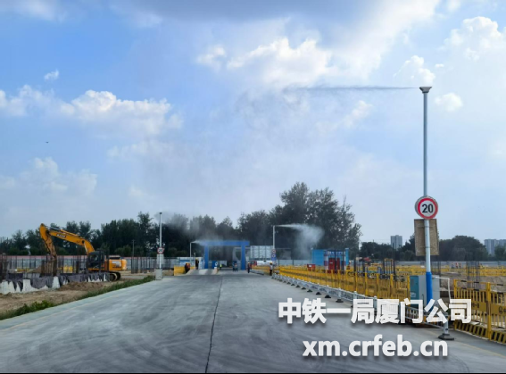 在筑牢地面防線的同時(shí),項(xiàng)目部顯著提升揚(yáng)塵治理的科技含量與精準(zhǔn)度,率先大規(guī)模啟用智能化高桿霧炮系統(tǒng)。相較于傳統(tǒng)噴淋系統(tǒng),高干旋轉(zhuǎn)霧炮系統(tǒng)具有覆蓋面積更廣、降塵效果更好等優(yōu)勢(shì),其形成的立體水霧屏障,全天候精準(zhǔn)捕捉、抑制高空逸散粉塵,有效解決了傳統(tǒng)設(shè)備難以企及的高空揚(yáng)塵難題。與此同時(shí),揚(yáng)塵監(jiān)測(cè)系統(tǒng)與智能化高桿旋轉(zhuǎn)霧炮機(jī)在工地內(nèi)部織密機(jī)動(dòng)防線,這些設(shè)備具備遠(yuǎn)程操控、智能聯(lián)動(dòng)功能,操作人員可依據(jù)粉塵實(shí)時(shí)在線監(jiān)測(cè)數(shù)據(jù)和作業(yè)面動(dòng)態(tài),靈活調(diào)整噴射角度與霧量,對(duì)土方開(kāi)挖、樁基施工、物料裝卸等瞬時(shí)高濃度揚(yáng)塵點(diǎn)實(shí)施“點(diǎn)穴式”精準(zhǔn)打擊,大幅提升抑塵響應(yīng)速度與瞬時(shí)污染控制能力。