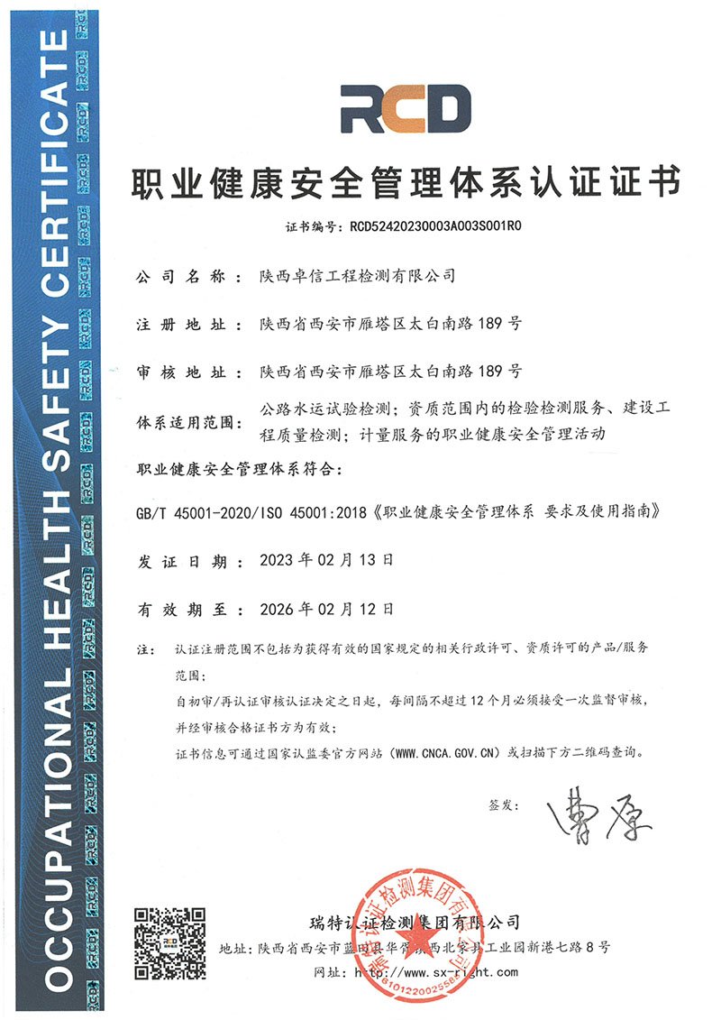 可承擔公路工程:土、集料、巖石、水泥、水泥混凝土及砂漿、水、外加劑、摻和料、無機結合料穩定材料、瀝青及瀝青混合料、鋼材及連接接頭、路基路面、混凝土結構、基坑、地基與基樁、交通安全設施等工程質量檢測業務。