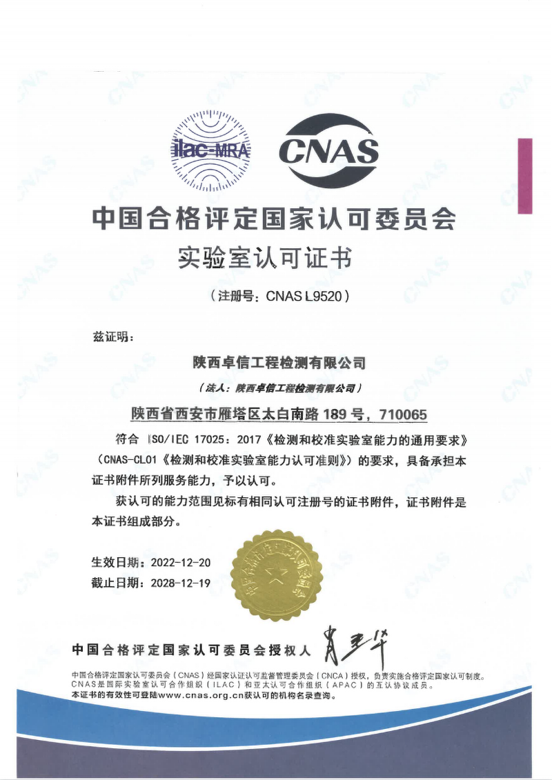 檢測和校準實驗室認可(ILAC-MRA/CNAS國際互認實驗室)資質